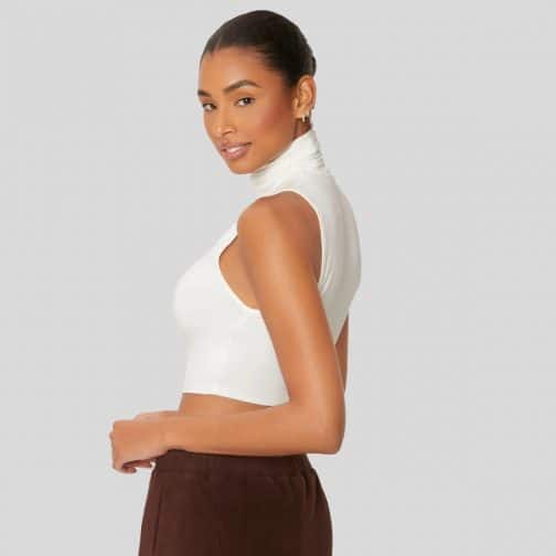 White High Neck Crop Halter Top.